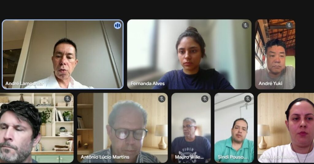 Na última terça-feira (2/12), André Yuki (presidente da Abrasel no Sul de Minas, SEHAV e ACIV), Rolando Brandão (presidente do SINDIPA e vice-presidente da Abrasel no Sul de Minas) e Ana Luísa Alves (diretora executiva da Abrasel no Sul de Minas e SEHAV) participaram de uma reunião online com a equipe do Festival Botecar: André Lamounier, Antônio Claret, Antônio Lúcio Martins, Fernanda Alves e Mauro Willer.